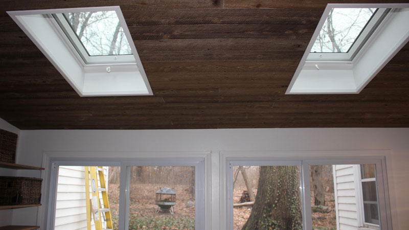 Figure 5 - The barn wood ship lap on the ceiling is a "rustic" counterpoint to the