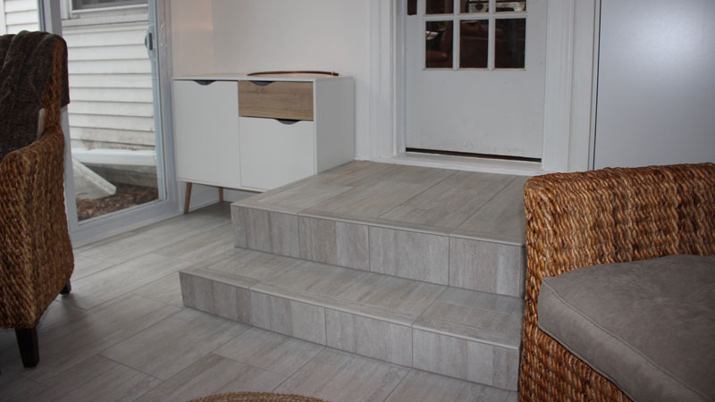 Figure 7 - Tile on the steps took twice as long as the rest of the floor. I kept the original