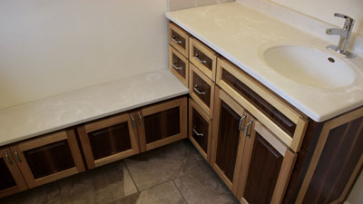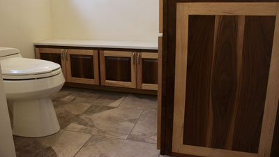 All in all, I'm happy with the way the bath vanity turned out. Tons of storage space in a relatively small bathroom is just what this house needed. The shorter "branch" of the vanity utilizes some space that might otherwise have been wasted and provides much additional storage. And in a pinch, it's a great place to sit and pull on your socks. As we woodworkers all know, the only way to get what we really want/need, is to build it ourselves.