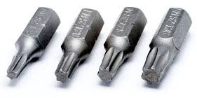 There are many sizes of Torx-head or star-drive screw heads and bits, all designated with a "T" followed by a number. The most common size you will find in the big-box stores sport T25 heads, but a few other sizes are becoming common. The bit must match the head size perfectly (no "fudging" like can be done with Phillips bits), but when the match is made correctly, bits last seemingly forever.