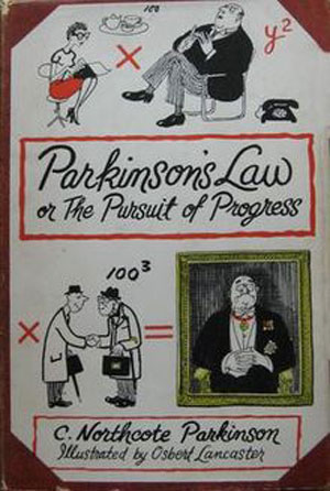 In his work, Parkinson gave as example a tired and overworked middle-aged bureaucrat who got not one, but two, additional employees to help with his workload. Adding just one helper would have elevated that helper to his level… unthinkable. But adding two allowed him to divide his work between them, rendering both individuals beneath him in the hierarchy and therefore no threat. The story continues, and the staff additions continue. With a subsequently bloated bureaucracy the original middle-aged bureaucrat asked for a specific report and all of his team worked on it through repeated drafts for several days. Eventually the report came back to him for approval, at which time he changed everything to a version he likely would have, and could have, written himself, thereby saving the British government thousands of dollars… err, pounds… and countless hours. None of the middle-aged bureaucrat's employees had done anything wrong, and they all had worked hard, filling their days with writes and rewrites of the report… it was the bloated system that failed.