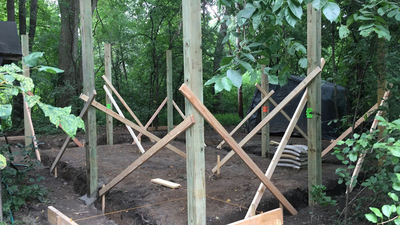 Figure 3 - Posts for the pole barn cemented in place before building the forms