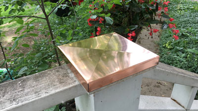 Figure 2 - Hand-crafted copper post top custom-sized to perfectly fit. I know, I know... the