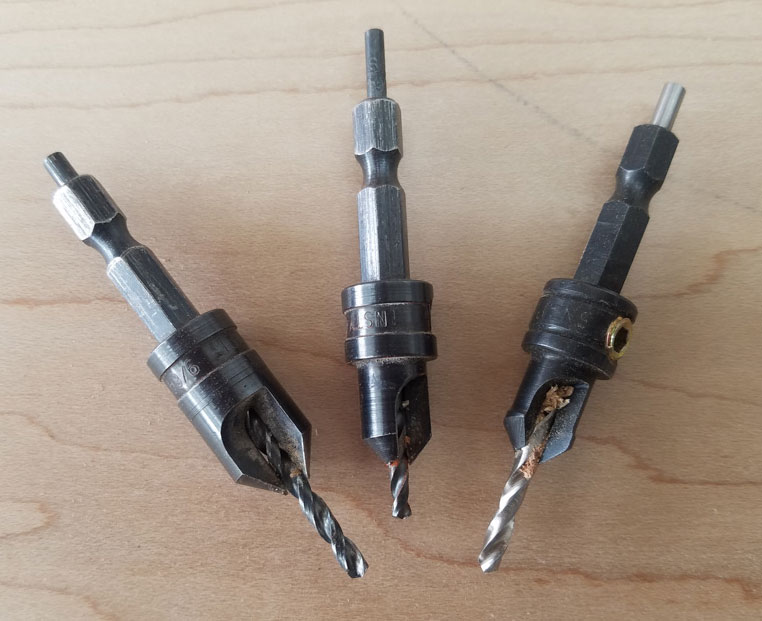 is a great set of little drill bits for drilling both a hole and a perfectly aligned countersink, simultaneously. The drill bit is held in place with a set screw and can be adjusted for various length holes. The drill bit set features non-tapered hex-shank drill bits sized at 3/32", 7/64", 1/8" and 9/64". The hex-shank can be used with hex-shank holders to speed up bit changes.
