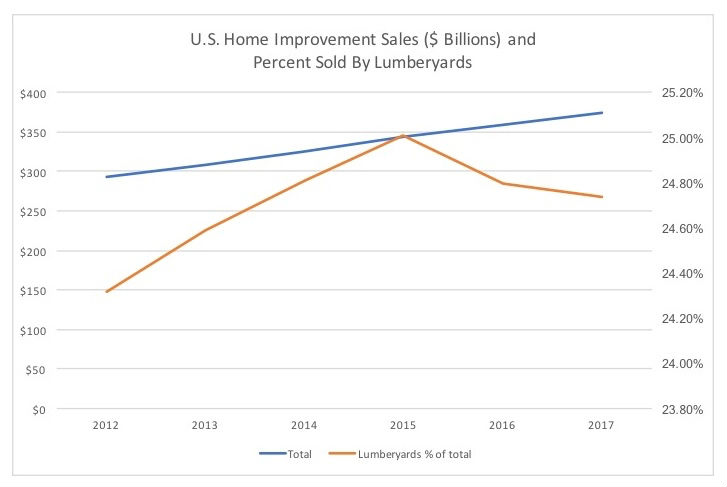 think so. There was a dip in 2015, but the percentage of sales made by lumberyards has