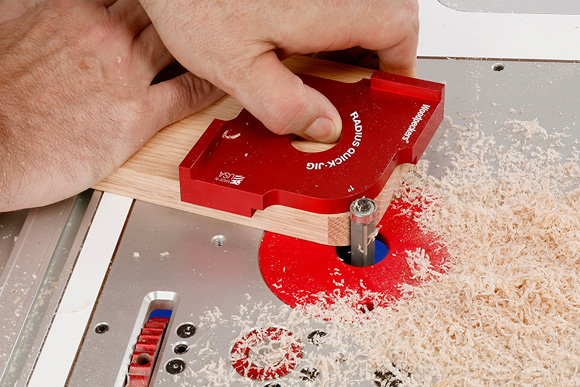 Projects look fully finished with the corners softened. Sharp corners are an invitation to chipped edges for the project and painful encounters when you bump into a piece. With this latest Woodpeckers OneTime Tool you can forget your jig saw and belt sander routine and accurately create clean, precise radiused corners in seconds using your router table.