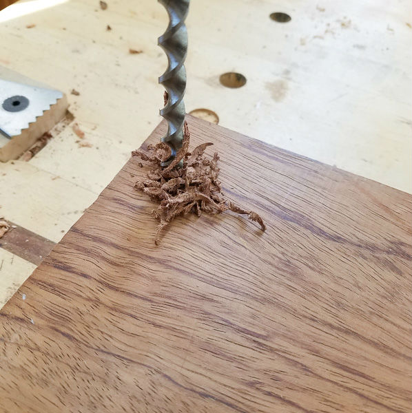 The spurs on the leading edges of the Jennings bit score the wood and create a clean entry
