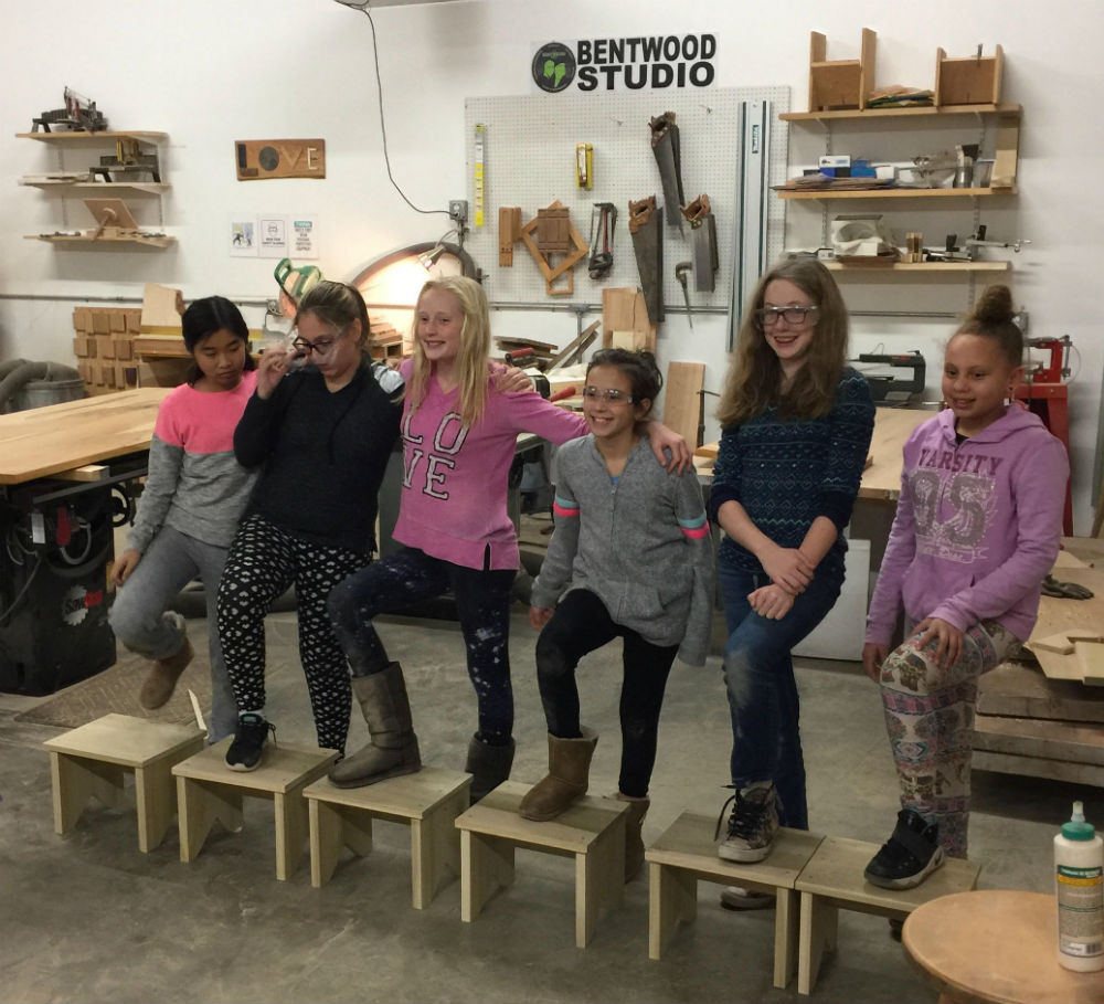 comes with a full set of real tools that kids can use to get started on a project in the shop.
