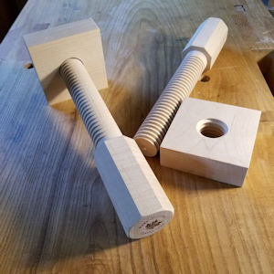 Moxon-style vises are especially useful for raising a workpiece to a comfortable height above your workbench to help facilitate precision sawing of joinery. The pair of lovely hard maple bench screws and matching nuts included in this kit are the essential ingredients for making your own affordable all-wooden Moxon vise. You provide the wood for the vise jaws using 4"-wide material at least 1-1/2" thick, and whatever length needed to provide the width capacity you would like for your vise.