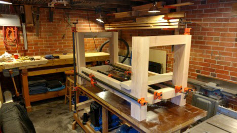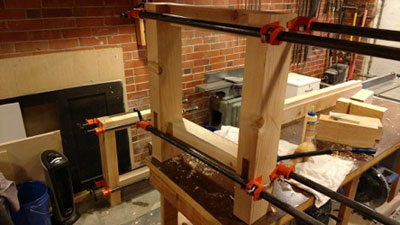 This was a little tricky for me as I was flying solo in the shop. If you have someone to lend a hand with this particular type of glue-up, that is highly recommended, as is going through a dry run of the glue-up beforehand to ensure that all joints fit well and that you are confident in the clamping placement.