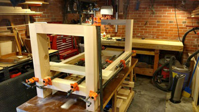 In addition, while being just fine for gluing up the leg assemblies, my clamps were just a little too short to make the reach needed to join the two ends together with the trestle stretchers.
