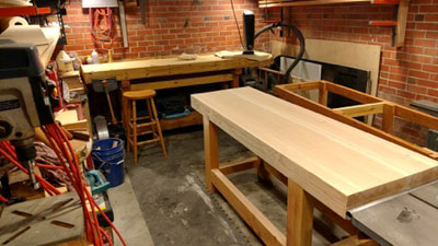 to hang on it. We lovingly mill the timbers to exacting dimensions and then glue-up a thick and heavy top, and we take great pains to lay out and cut whatever joinery we are going to use to put the thing all together.