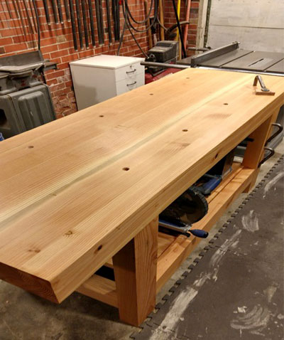 Yes, making the top out of hard maple would definitely help limit the dings and dents that are sure to happen to this Douglas fir behemoth. It would also cost roughly $950 more to build.