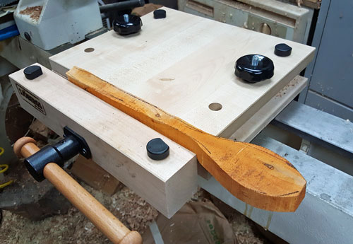 ever since we started selling them at Highland Woodworking. What a great idea! It can be fixed or clamped to a table or workbench when a vise is needed for a project. I thought how I could really use this Smart Vise in my shop. The only horizontal space available in my shop was my lathe setup. It is a good working height and easy to get to. Actually, it is the only space that is not cluttered (I know I need to clean up).