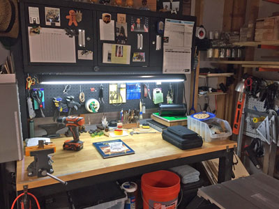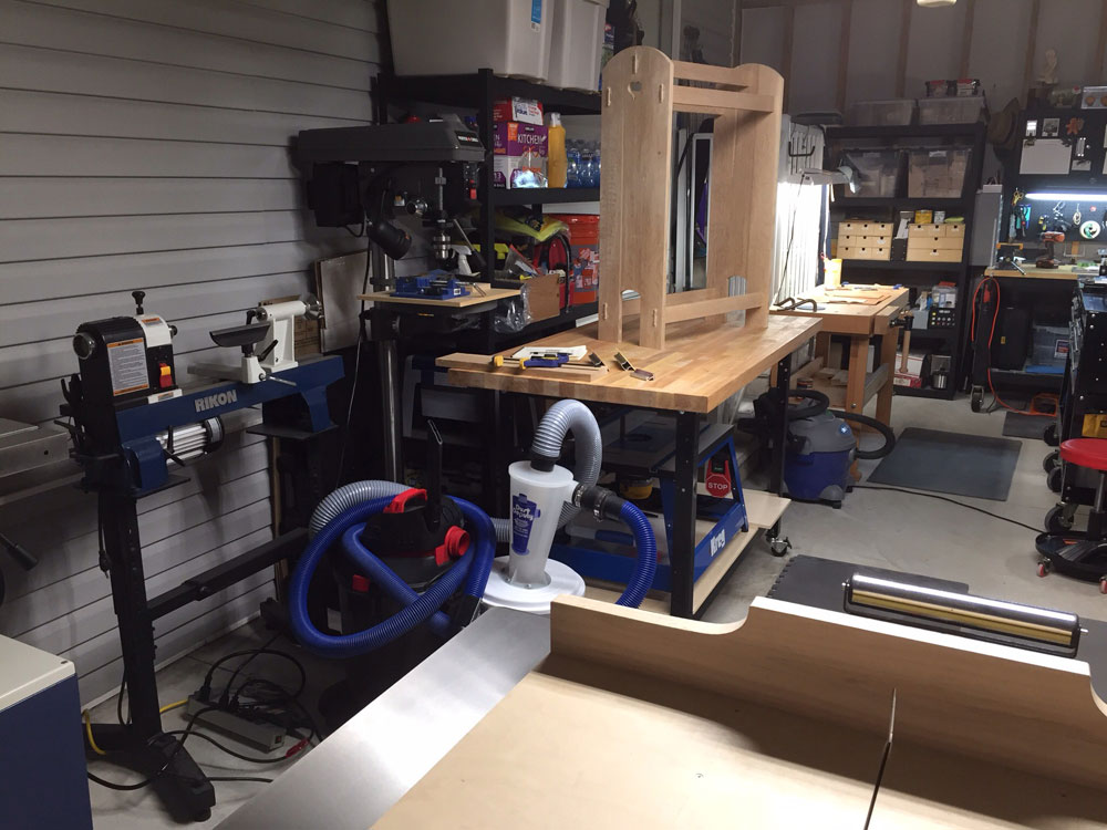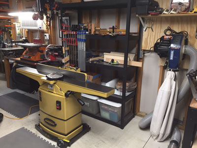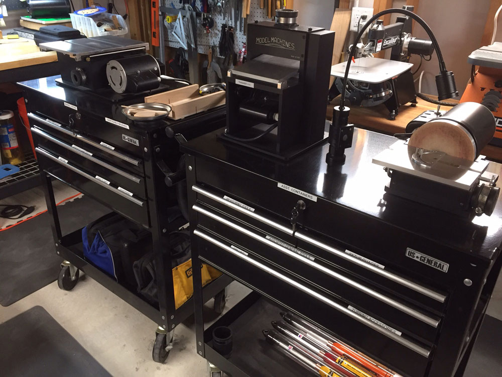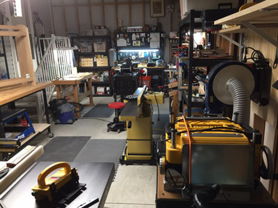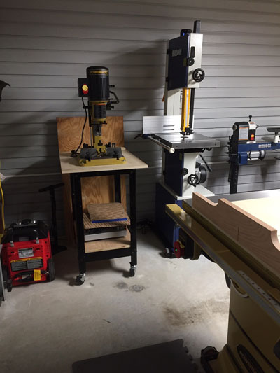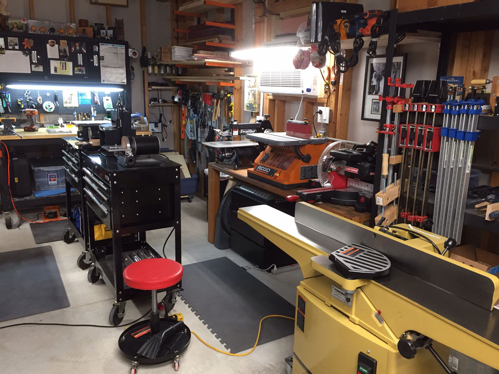 All the heavy power tools are on mobile bases, which are easily moved and configured, for whatever my needs are.