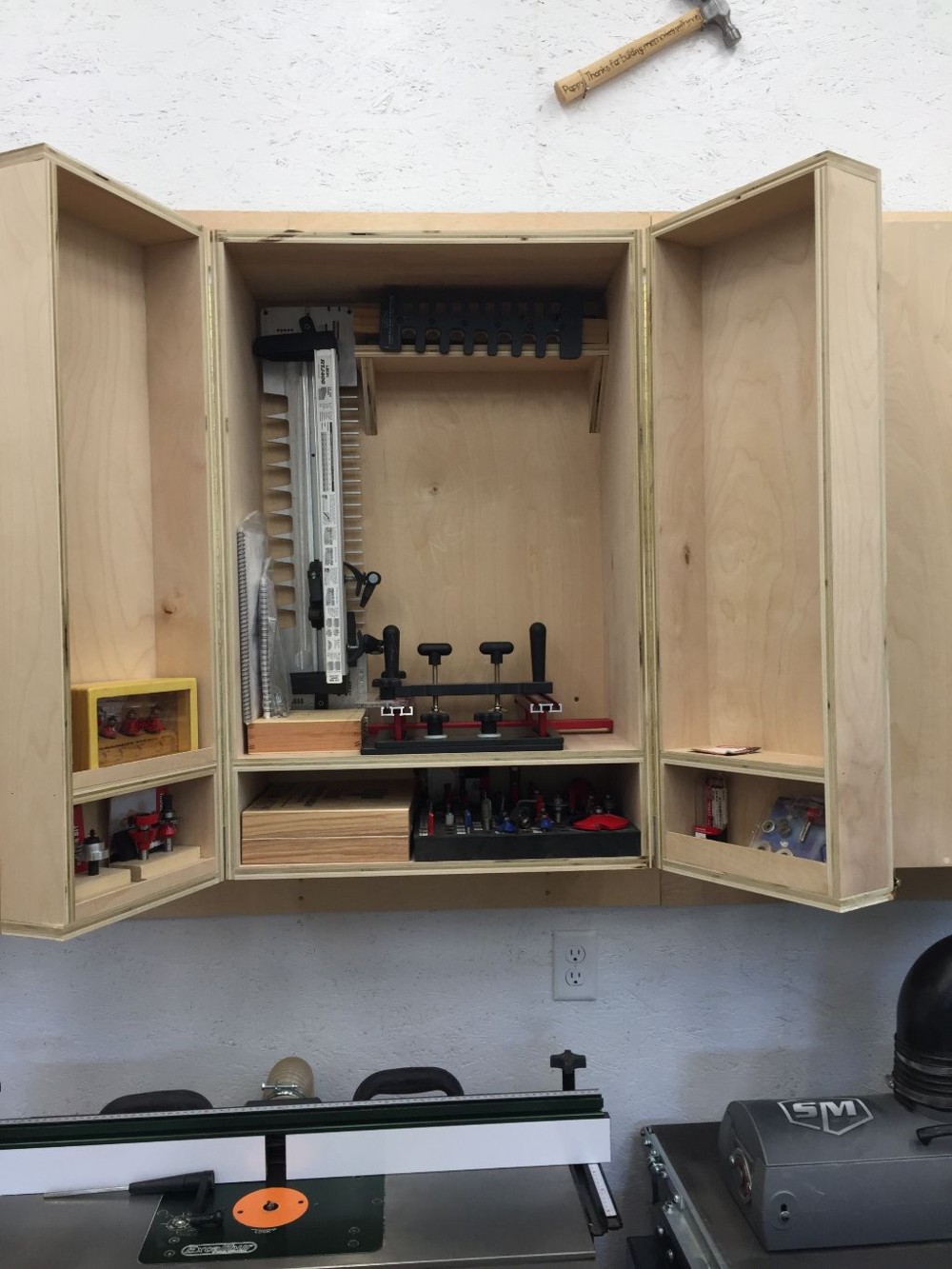 supplies, as well the sanders, router table (located under the cabinet filled with router supplies