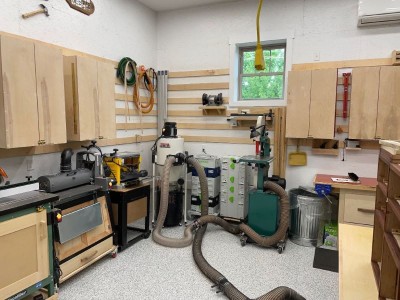 become satisfied with the placement of the table saw and jointer, I plan to pipe the dust