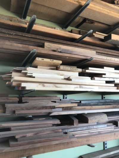 There is a palpable feeling of deep time in the shop. A 1920's Frederick Loeser side table sits in pieces on the bench waiting for some new veneer and refinishing. The tag on the bottom says, "In Every Detail the Finest Retail Establishment in Brooklyn." This piece was originally sold before the Great Depression and my task is to make it like new again. Over on the wood rack, just about every piece of lumber started growing before I was born. Some even bear circular sawmill tracks showing they were processed in the late 1800's. Like a wine cellar with rows of vintage bottles, I know the history of most of the pieces of wood. There's some chainsaw milled white oak from a tree that came down in Hurricane Opal in 1995, matched planks of walnut sawn from a tree in Kansas, just a bit of catalpa lumber and some small pieces of Honduran mahogany from Grandpa Burnham. Some walnut that Grandpa Rummer milled for picture frame stock. Some of the seedlings that turned into my lumber probably sprouted in the 1700's. You can almost hear the stories spilling out of the lumber rack, tumbling over each other, "Let me tell you about the time..."
