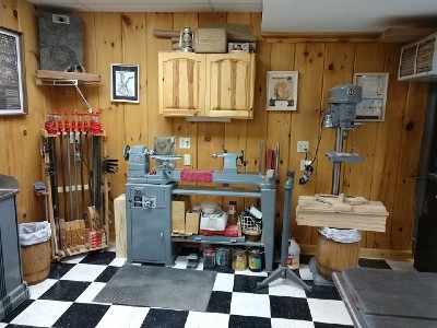 Above is my 6"x18" Craftsman metal lathe and restored Union Tool Chest. Next to the breaker panel is an