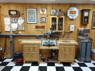 Next is my Delta table saw, the only stationary machine I purchased new. The front wall holds my