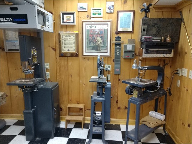 frame in the very first picture of this tour. On the right is my 1946 Delta scroll saw and next to it