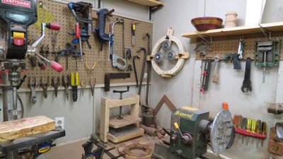 I have all of the equipment I need to do woodworking and woodturning, I mostly just do woodturning now. I have two lathes, a Delta midi and a Craftex full-size lathe. I use a Nova and a Talon chuck to hold the wood on the lathes.