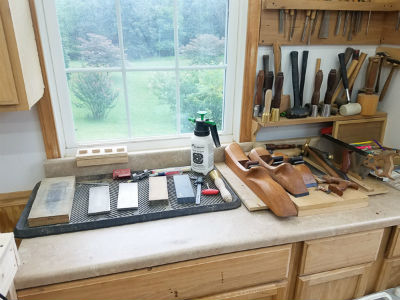 My sharpening station is always setup and ready to go. One of my desires when setting up the whole shop was that I wanted to be able to just walk up to a tool and use it. If something is hard to access then it won't be used. That is especially true for the sharpening station. If it is hard to resharpen a chisel or plane blade then I might delay and a tool becomes more dangerous to use as the blade gets duller.