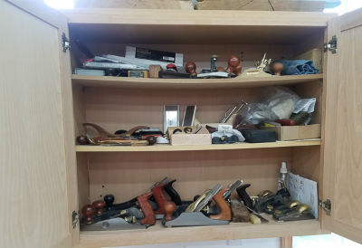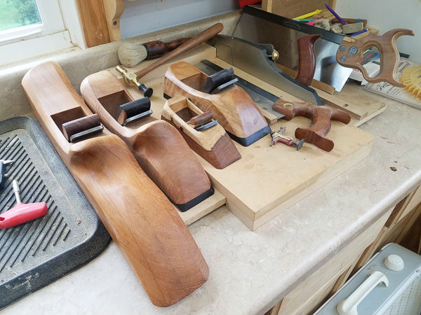Next to the sharpening station are some handmade planes. These planes were partially made in a class with Scott Meek and finished at home. From left to right are my jointer, jack, block and smoother planes.