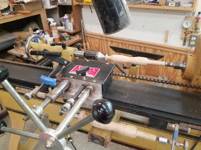 Below is a closeup of the Vega duplicator that I use to make the mallet handles for the Shenandoah Tool Work's mallets.