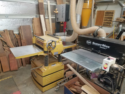 My shop is basically broken down into a machine room area and a hand tool and assembly area. When you enter you walk into the machine room and are greeted by a Powermatic 20' planer and SuperMax 25' drum sander.