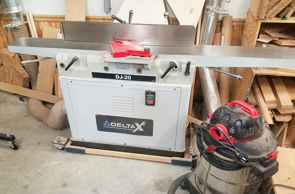 Next to the dust collector is a Delta 8' jointer with a Byrd helical head that I installed a few years ago. It's a real workhorse and is probably the oldest tool in the shop. You can also see one of about five handy shop vacs that I have scattered around the shop.
