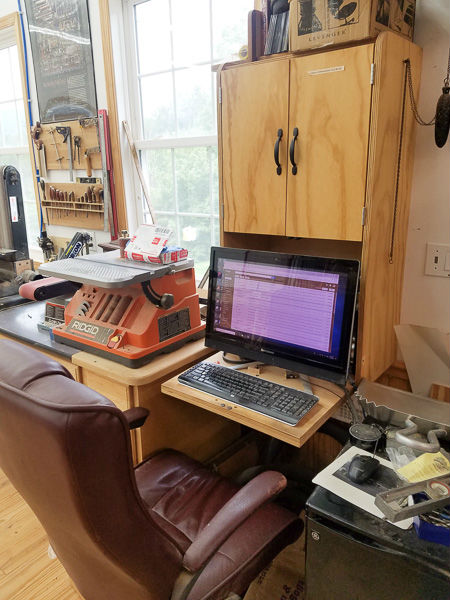 As I enter the newer part of the shop I have a small area set aside for a computer to read email and to review furniture models that I've made in