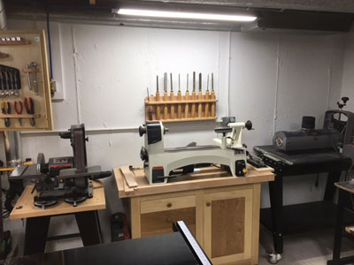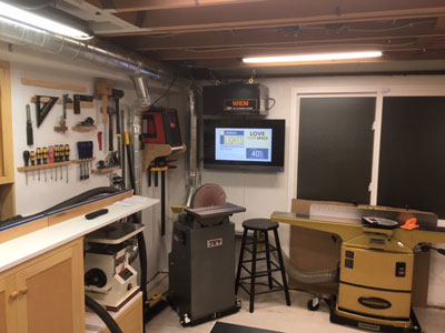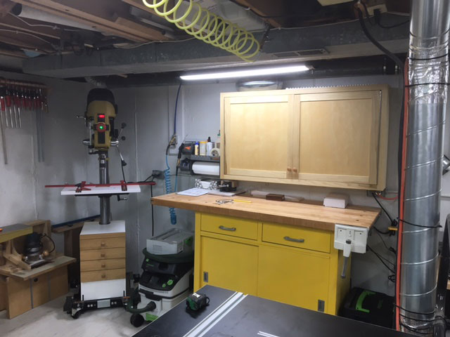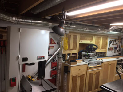 Fast forward 35 years, still in the same house and still wanting my own shop. The only space not being used in my house was a 13' x 22' room under my family room with only 7'-2" ceilings, so I went to work at converting what had sort of been a workshop into a woodshop. Starting out I bought some Rigid machines but quickly found they were not the quality I wanted in the long run. About a year into the shop change over I decided to add a dust collection system and what a blessing that has been! I went with the new JET Cyclone 2 hp machine. I had a local sheetmetal company make all of my ducting and built a soundproof room to house it and the air compressor in, and had it up and going in about a month.