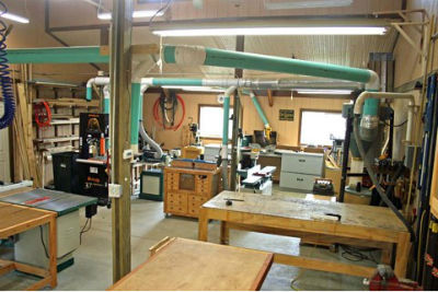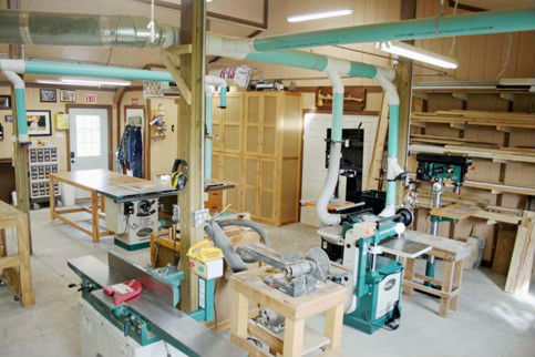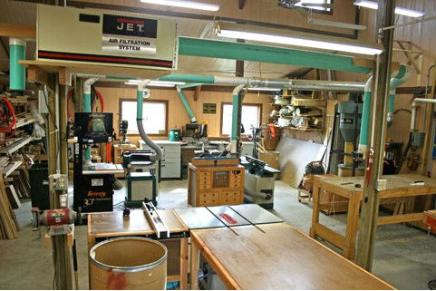 My first wood shop was in the basement of the house making it handy for all the remodeling but was a pain to get materials up and down the stairs. When it came time for a new garage, I went big as seen in the picture above. I have a three-car garage with equal space in back for my shop, which is 850 square feet.