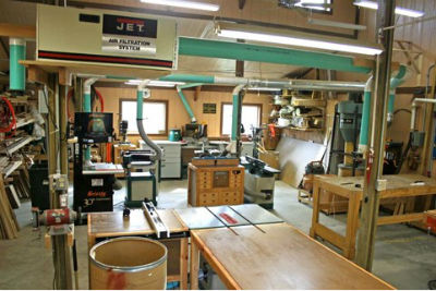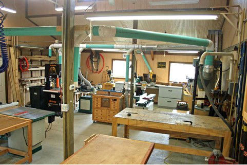 The wife wanted a heated garage and I of course wanted a heated shop. To solve this and other problems such as electric, Phone, and Internet I had a 6-inch conduit run from the basement to the garage when it was built. Our house is hadronically heated, so it was no problem to run a hot water and return line through the conduit. Both garage and shop have in floor heat and it is great. During the cold winters in Wisconsin I keep the temperature in the shop at 62. My feet are always warm and the rest of me is comfortable. Then it was years of upgrading tools and building cabinetry to get to what I have today.