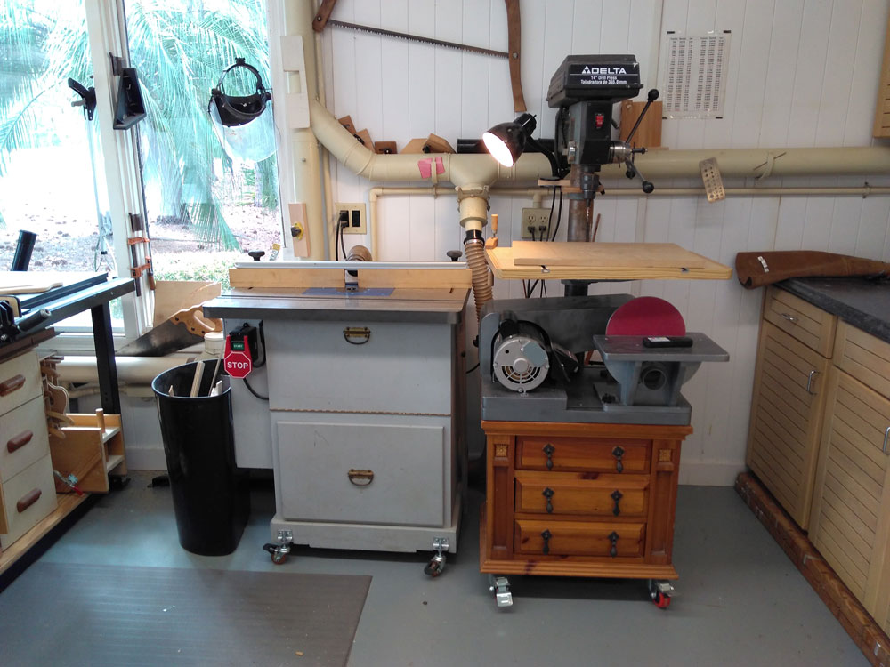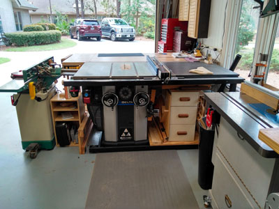 This is my 600 square foot garage workshop. Woodworking has been a hobby of mine ever since I bought my wife a sander for Mother's day. In defense, I got it for her so I could sand and refinish a hand-me-down crib for our new baby. I made my wife a sewing machine cabinet so she could make diapers for the baby. The cabinet didn't survive our first move, but 54 years later, I'm still making lots of sawdust and furniture.
