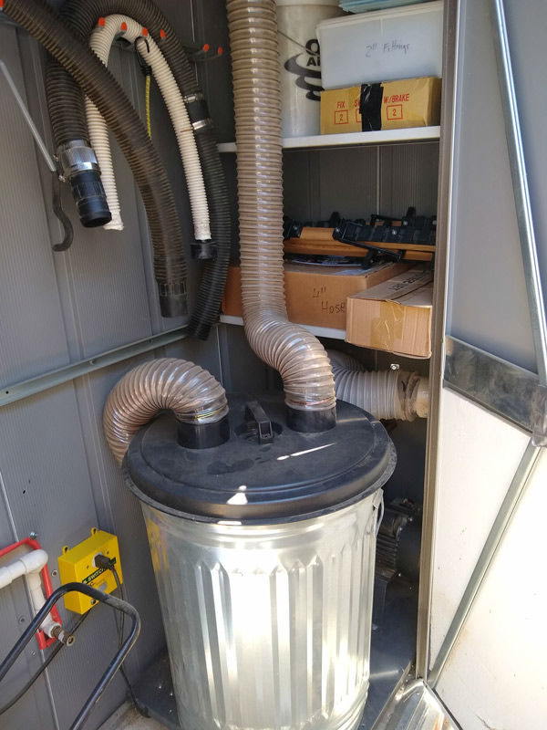 additional storage and houses a compressor for pneumatic tools and the dust