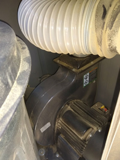 efficient dust collectors in the shop in spite of all the 'warts'. Note the cutout in